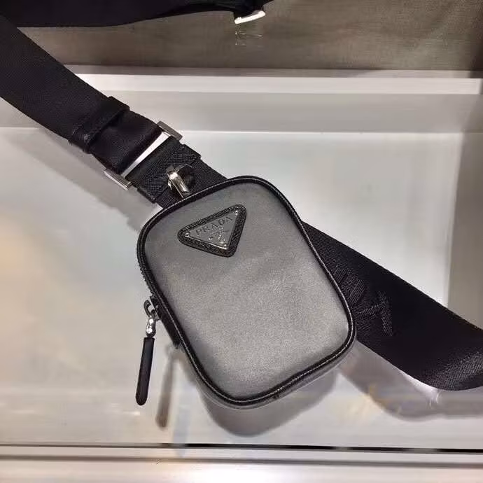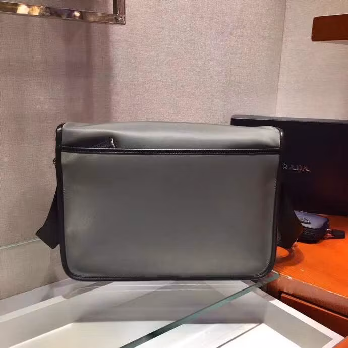 Prada Logo Plaque Messenger Grey Bag